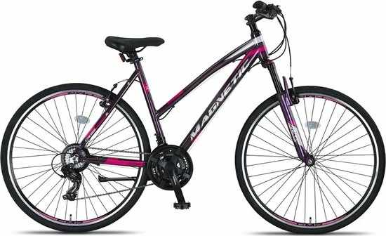 Altec Magnetic Trekking V-Brakes 28inch 52cm 21vOnze Altec fietsen zijn nog niet afgemonteerd en worden in een doos verstuurd. Zie de handleiding onderaan voor instructies. Altec Magnetic Trekking V-Brakes 28inch 52cm 21v Met de Altec Magnetic behoud je de volledige controle in alle omstandigheden. Of je nu graag door de bossen rijdt, over het strand of gewoon naar werk, het kan allemaal! Dit komt dankzij de fijne eigenschappen waarover deze topper beschikt. Neem bijvoorbeeld het aluminium frame. Dit type frame is heerlijk licht, sterk en roestvrij. De velgen zijn gemaakt uit dubbelwandig aluminium. Dit betekend dat de kans op een slag in het wiel erg klein wordt. Maak je graag sprongen met je nieuwe mountainbike? Dan is een vervende voorvork onmisbaar! Met dit onderdeel worden schokken opgevangen. Zo rijd je ook over ruwe wegen erg comfortabel. Ga je er graag langer op uit? Ook dat kan prima met de Magnetic! Deze trekking fiets beschikt namelijk over 21 handige versnellingen.Aluminium Frame: Een aluminium frame is niet alleen lichter in gewicht, een tweede voordeel is ook dat het niet roest Groot aantal versnellingen! Hiermee schakel je altijd naar de juiste trap zwaarte. Perfect voor bijvoorbeeld mountainbikes. Verende voorvork: Een verende voorvork biedt net dat beetje extra comfort Design: De fiets heeft een sportief en strak design Geen verlichting