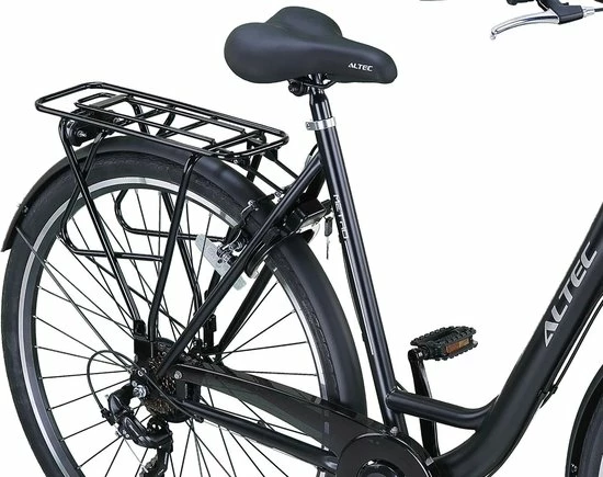Altec Metro Damesfiets 28 inch 55cm 7vOnze Altec fietsen zijn nog niet afgemonteerd en worden in een doos verstuurd. Zie de handleiding onderaan voor instructies. Altec Metro Damesfiets 28 inch 55cm 7v De Altec Metro is een betaalbare stadsfiets met maar liefst 7 Shimano versnellingen. Een stadsfiets met dit aantal versnellingen tegen deze prijs vind je niet snel! Altec Metro Damesfiets 28 inch 55cm 7v stadsfiets beschikt over een aantal fijne eigenschappen. De prijs is wellicht het eerste wat je opvalt en dat is zeker een goed aspect van deze fiets. Het design van deze fiets is bovendien erg modern en komt dan ook goed tot zijn recht in een stedelijke omgeving. Mat Zwart is sowieso een kleur die erg mooi staat. Het materiaal van het frame is staal. Hierdoor is de fiets wel wat zwaarder, maar aan de andere kant ook erg stevig. Let wel op, oxidatie is bij staal niet uit te sluiten. Daarom kunnen we je als tip meegeven deze in te spuiten met blanke lak.Je kunt de fiets onder controle houden door middel van de veilige V-brake handremmen. Het beste aan deze elegante stadsfiets zijn toch wel de 7 versnellingen. Hiermee zijn de snelheid en trapzwaarte van jouw fiets altijd op het niveau dat perfect is voor jou. De velgen bestaan, in tegenstelling tot het frame uit aluminium. Lichtgewicht en roestvrij dus! Voor de fanatieke fietser die ook s’ nachts gebruikt wilt maken van de Altec Metro, zit er op zowel de voor als achterkant LED verlichting. De Altec Metro is een leuke fiets voor een scherpe prijs. De v-brake en derailleur moeten nauwkeurig en met enige regelmaat afgesteld worden voor een optimale prestatie. Dit is een leuke fiets voor af en toe waar je niet een hele grote verwachting bij moet hebben. Voor dagelijks en intensief gebruik kunnen we andere alternatieven aanbieden. Zoals hierboven weergegeven. De Altec Metro kan je in doos of rijklaar aanschaffen. Ons advies is om een fiets altijd rijklaar aan te schaffen. Dit komt omdat het afstellen van de derailleur versnellingen lastig kan zijn. Zo weet je zeker weet dat een fiets door een vakkundige monteur is afgemonteerd. Een veilige en goede montage is niet alleen belangrijk voor goede prestaties van de fiets, maar ook voor de slijtagegevoeligheid van bepaalde onderdelen. Meer informatie over de Altec metro (https://www.superfietsen.nl/service/informatie-over-de-altec-metro/) Shimano derailleur 7: Shimano derailleur 7 biedt een zeer ruime keuze in versnellingen