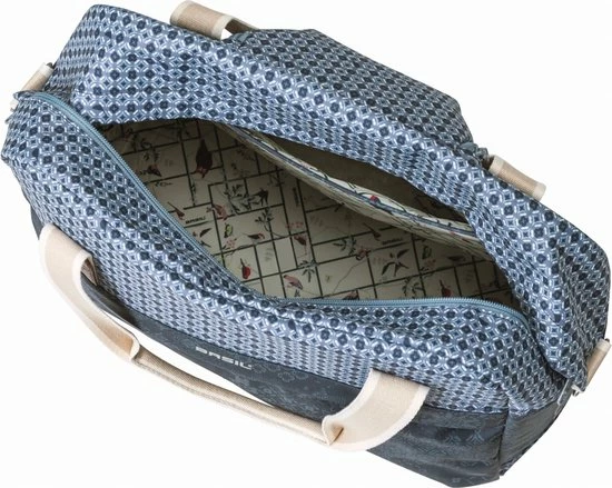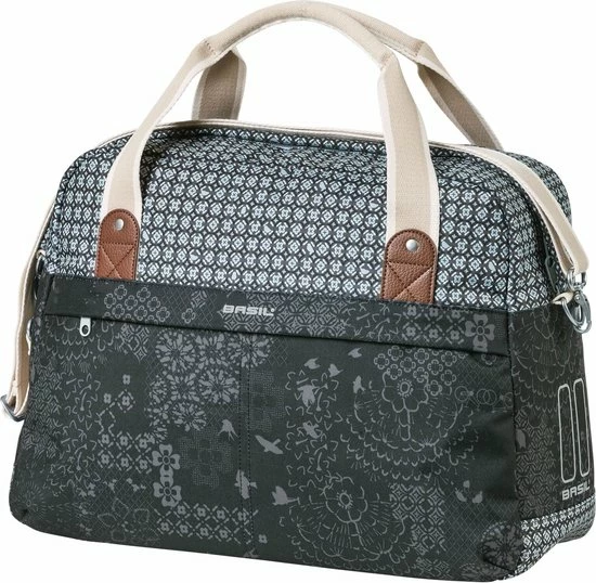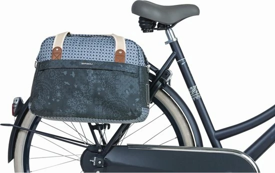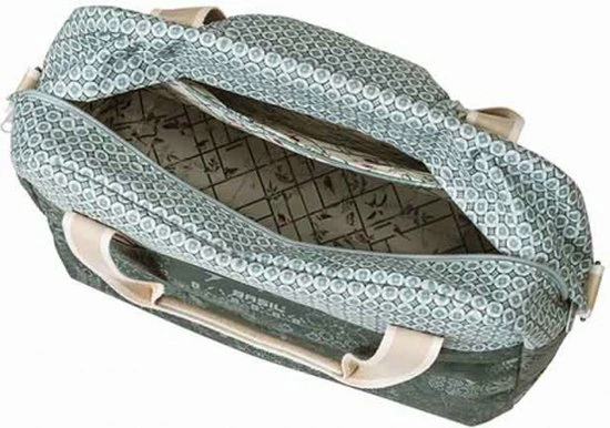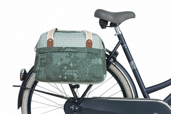 De Basil Boh?;me fietsschoudertas is een enkele groene fietstas die er stijlvol uitziet, maar ook nog eens erg makkelijk in gebruik is. De tas heeft een inhoud van 18 liter en de bohomien print zorgt voor een elegante uitstraling. Door het Hook-On System is de tas geschikt voor vele bagagedragers (ook e-bike) en kun je hem eenvoudig aan je bagagedrager haken. Dit systeem is mooi weggewerkt met behulp van een apart ritvakje. De tas beschikt over twee hengsels en een afneembaar schouderhengsel, waardoor je hem als schouder-, hand- en fietstas kan gebruiken. Een fietsrit naar de supermarkt of een lunchafspraak met die vriendin, deze fietstas maakt jouw (boho) look compleet en de fietsrit makkelijker. De fietstas is voorzien van een binnenzak, stevige binnenvoering, kunstlederen details en een ritssluiting. Door het waterafstotende polyester blijft de inhoud van de tas droog bij een kleine regenbui. De reflectiedetails op beide kanten zorgen ervoor dat je beter zichtbaar bent in het donker. Deze Basil Boh?;me Carry All is verkrijgbaar in meerdere kleuren waaronder rood en blauw. Ben jij fan van mixen en matchen? Neem dan een kijkje bij de bijpassende bohemian zadelhoezen en fietsbellen. Eigenschappen: De fietstas is geschikt voor diverse bagagedragers (ook e-bikes). De tas is gemakkelijk te bevestigen met behulp van het Hook-On System. De tas kan door het waterafstotende polyster tegen een regenbuitje, maar zal na een dag in de regen niet meer kurkdroog zijn. De fietstas is multifunctioneel en kan als fiets-, schouder- en handtas gebruikt worden. De fietstas is veiliger door reflectiestukken en groene klipje, zodat je de tas niet gemakkelijk verliest.