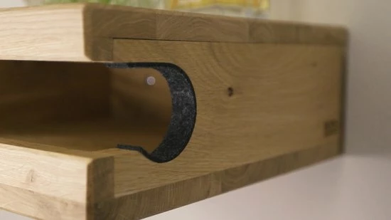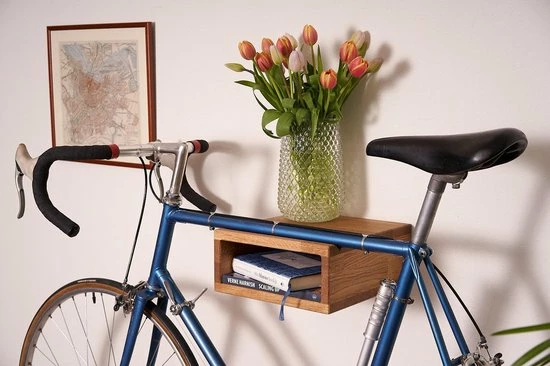 Bike On The Ledge #2 is handgemaakt van natuurlijk eikenhout, afgewerkt met een laagje kurk bovenop. In deze fietshouder zul je geen schroeven vinden, aangezien er in dit ontwerp alleen natuurlijke (onzichtbare) houtverbindingen gebruikt zijn. Zo cree?r je een prachtig zwevend effect aan jouw muur. Hang jouw fiets aan de muur – gegarandeerd het gespreks onderwerp in jouw huis.