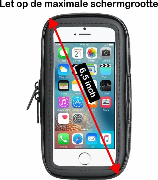 Het vasthouden van je smartphone tijdens deelname aan het verkeer is niet veilig. Daarnaast kan je het een boete van ?95 opleveren. Toch wil je ook graag de route weten naar je bestemming of wil je een ander liedje luisteren. Bespaar jezelf een boete met deze BTH telefoonhouder voor je fiets. Met deze waterbestendige telefoonhouder extra large voor je fiets kan eenvoudig navigeren en handsfree gebruikmaken van je smartphone. Op deze manier kan je veilig deelnemen in het verkeer.