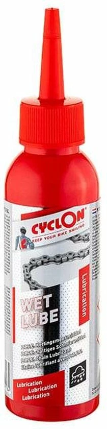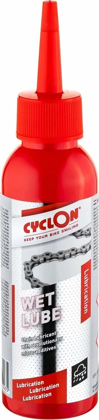 Cyclon ? MTB Wet Lube is een uitstekend smeermiddel in een doseerdruppelflacon met langdurige werking voor kettingen die blootgesteld worden aan extreme omstandigheden zoals bij mountainbikes, karts en motorfietsen. Vloeit goed uit tussen de schakels van een ketting en zorgt voor een langdurige, smerende werking voor kettingen die blootgesteld worden aan extreme omstandigheden; De kettingen blijven soepel, ook nadat de smeerfilm sterk vervuild is; Kan een hogere drukbelasting aan; Verdrijft vocht en beschermt tegen roestvorming; Is zeer geschikt voor natte weer omstandigheden; Verhoogd de soepelheid tijdens het schakelen; Bevat P.T.F.E. Cyclon ? MTB Wet Lube voor kettingen van mountainbikes, karts en motorfietsen die aan extreme omstandigheden worden blootgesteld. Ketting of onderdelen eerst met Cyclon ? Bionet ontvetten voor een optimale werking; Schudden voor gebruik; Druppelsgewijs aanbrengen op de scharnierpunten van de ketting en/of delen; Minimaal 5 ? 10 minuten voor gebruik van uw fiets toepassen.
