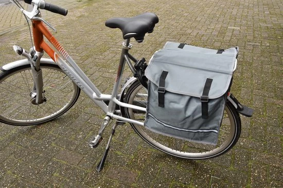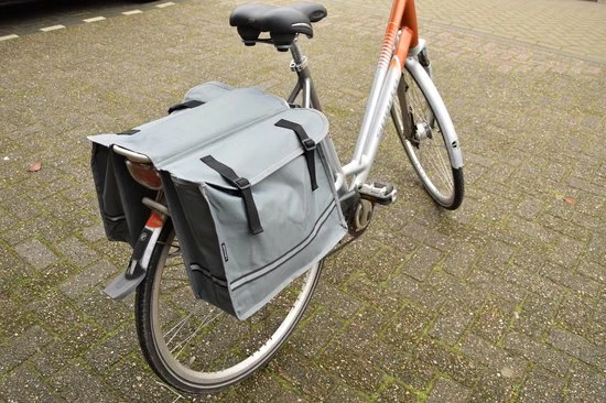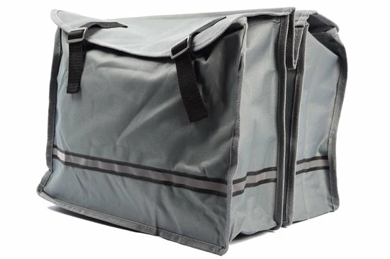 Dubbele fietstas grijs, 15 liter. De fietstas bevat een reflectieband, wat de fietsveiligheid ten gunste komt. De fietstas kan makkelijk op vrijwel elke bagagedragen worden bevestigd. Afmetingen fietstas: 12 x 30 x 36 cm. De inhoud is ca. 15 liter. Fietstassen blauw.