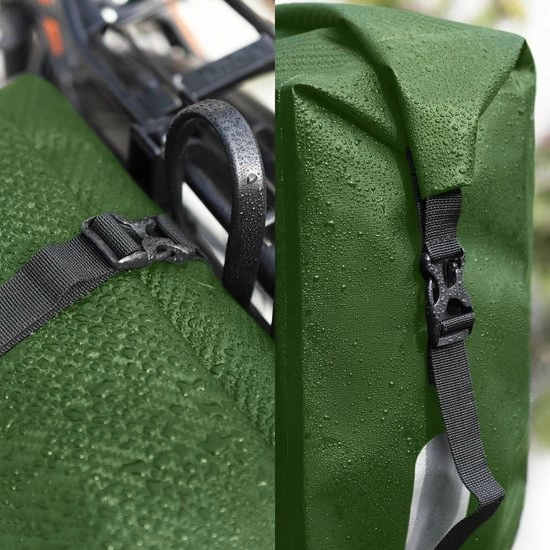 Wie de Dutch Mountains fietstas voor het eerst uit de verpakking haalt valt gelijk op hoe sterk deze tas is. Hij is gemaakt van hoogwaardig dik tarpaulin. Het materiaal waar vrachtwagenzijl van gemaakt wordt. Ook het productieproces voldoet aan de hoogste normen. Deze tas is (in tegenstelling tot vele concurrenten) niet aan elkaar gestikt, maar volledig heat-sealed. Deze verbinding is beresterk én 100% waterdicht. De schouderbanden zijn met dubbele stiksels aan de tas bevestigd. Onverwoestbaar…