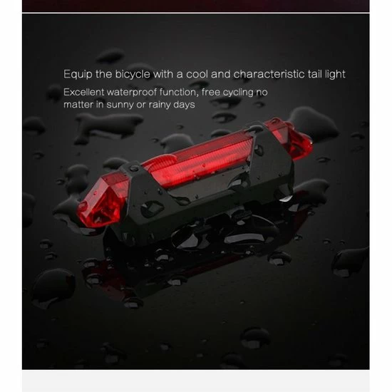 Met deze fietsverlichting ben je altijd goed zichtbaar. Het achterlicht kan in meerdere standen bijvoorbeeld volledig branden, knipperen, en slow flash. Het achterlicht is oplaadbaar met de meegeleverde micro USB kabel.