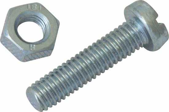 Roestbestendige zink-platering. Sleuf pancilinderkop. Inclusief M5 en M6, zeskantmoeren met maten tussen M5 x 12 tot M6 x 25 mm. Handige gevakte opbergkoffer.