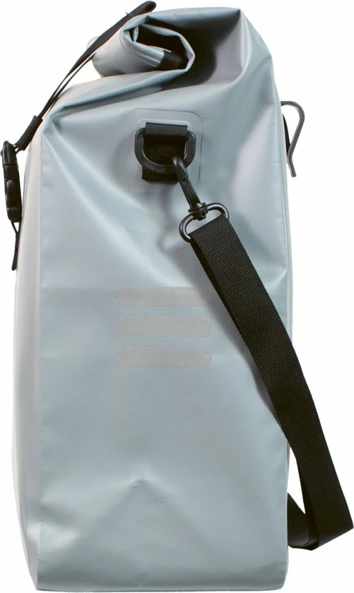 De tas maak je eenvoudig waterdicht door de bovenkant op te rollen en deze d.m.v. een snelsluiting vast te klikken. Reflectie voor en achter zorgen ervoor dat je beter zichtbaar bent in het verkeer tijdens de donkere dagen. Daarnaast kunnen hierdoor de tassen aan beide zijden van de bagagedrager bevestigd worden.