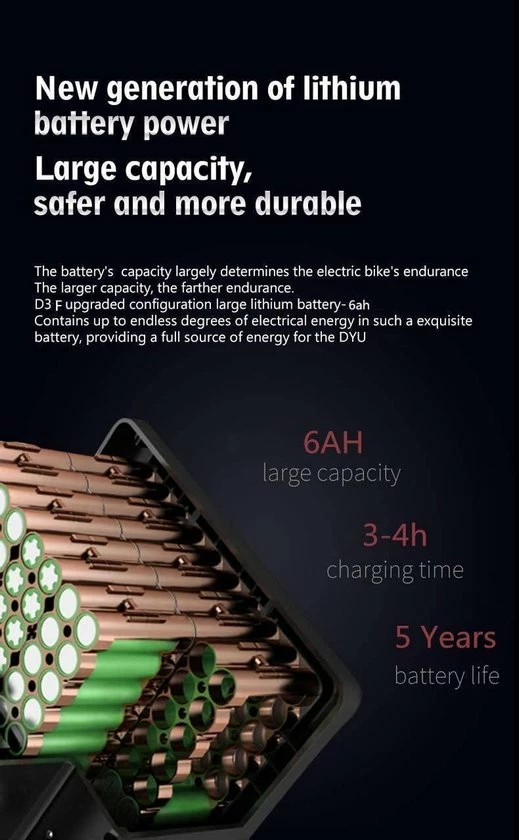 - ? ? 3 werkmodellen en dubbele schijfremontwerp ? – DYU Electric Bike heeft 3 intelligente fietsmodi – E-bike & Assisted fiets & normale fiets. Heeft ook een dubbele schijfrem ontwerp, de aandrijving maakt de pauzes gevoeliger, de dubbele schijfrem verbetert de remprestaties volledig, maakt de remafstand korter en rijdt veiliger.