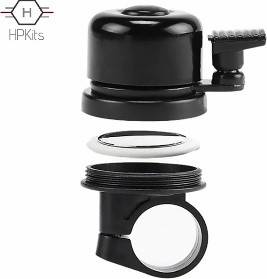 Zwarte HPKits AirTag Fietsbel welke de perfecte houder is voor de AirTag op je fiets. Door je Airtag van Apple te plaatsen in de fietsbel raak je je fiets nooit meer kwijt. De fietsbel is gemakkelijk te installeren door middel van een schroef. Geschikt voor een breedte van 22mm diameter stang. Dankzij het fietsbel ontwerp valt deze niet op voor dieven.