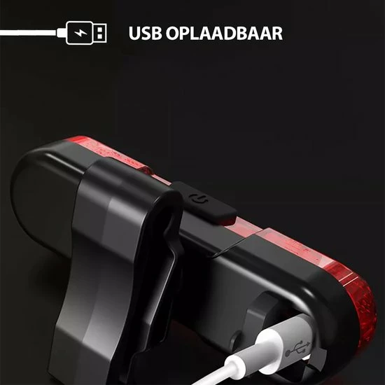 Wanneer het achterlicht leeg is, kan je deze eenvoudig opladen met de meegeleverde USB kabel. Dit kan met ieder willekeurig apparaat zoals een USB-lader, laptop of bijvoorbeeld een powerbank. Een groot voordeel van oplaadbare fietsverlichting is dat de helderheid van het licht behouden blijft. Dit in tegenstelling tot fietsverlichting die werkt op batterijen. Deze verliezen al helderheid kort na gebruik!