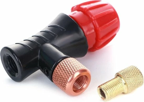 C02 Fietspompje | Co2 Adapter | Co2 Pompkop Regelbaar | Mini Fietspomp – voor 16gr / 32gr co2 Patronen• Bij deze aanbieding worden geen patronen meegeleverdZeer duurzame en goede kwaliteits Co2 adapter. Geschkt voor alle patronen met schroefdraad. Met de rode draaiknop kan je de hoeveelheid lucht reguleren. De CO2 adapter is geschikt voor zowel Presta(Frans) en Schrader (auto) ventiel.Deze CO2 adapter pomp is geschikt voor CO2 patronen met schroefdraad. Die zijn er in 16 grams en 32 grams.