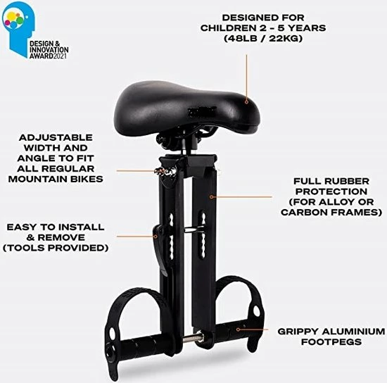 Zet je kind voorop de mountainbike met het Zadel Op Stang plus stuur fietszitje. Dit zadel monteer je makkelijk op je eigen fiets.