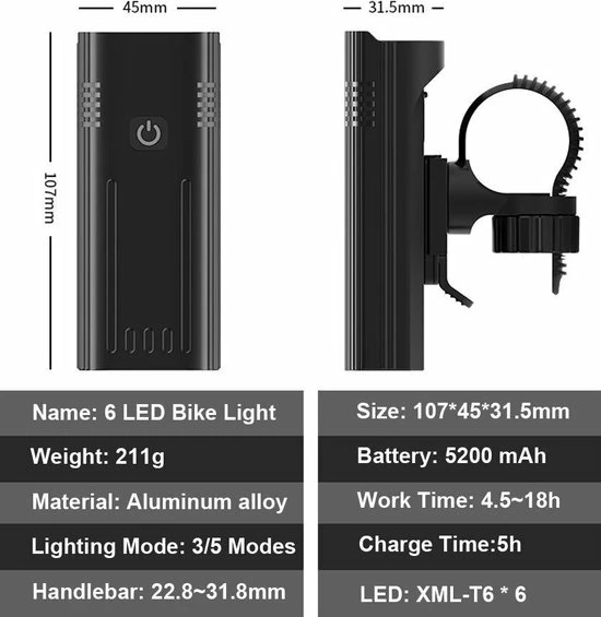 Dit voorlicht met een aluminium behuizing en met een USB uitgang kan tevens als powerbank gebruikt worden door de ingebouwde 5200mAh batterij.
