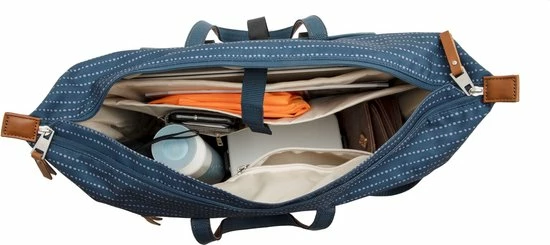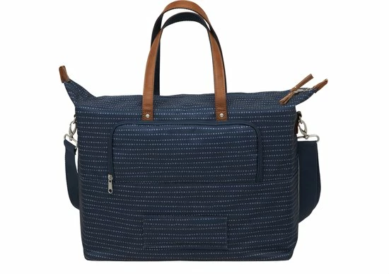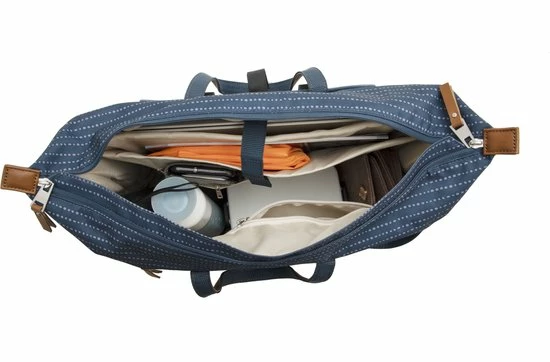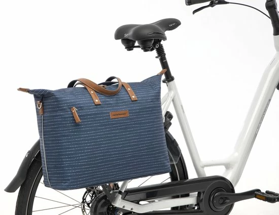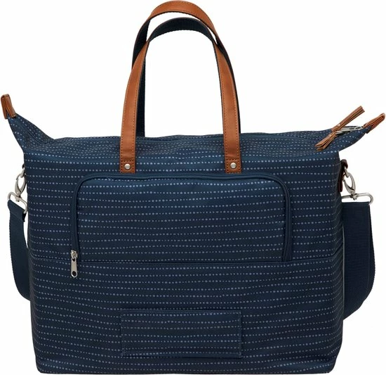 De hippe Tendo is een fietstas, handtas, schoudertas ?n laptoptas in ??n. Deze fietstas voor vrouwen heeft een moderne stippenprint en details in lederlook. Dankzij het zeer ruime hoofdvak, de vele kleinere extra vakjes en een gewatteerd vak speciaal voor een laptop, neem je al jouw spullen goed georganiseerd mee. Tover de tas in een handomdraai om tot hand- of schoudertas, dankzij de verborgen bevestigingshaken en afneembare schouderband. De fietstas in Nomi print is er in een zwarte, blauwe en een grijze uitvoering.