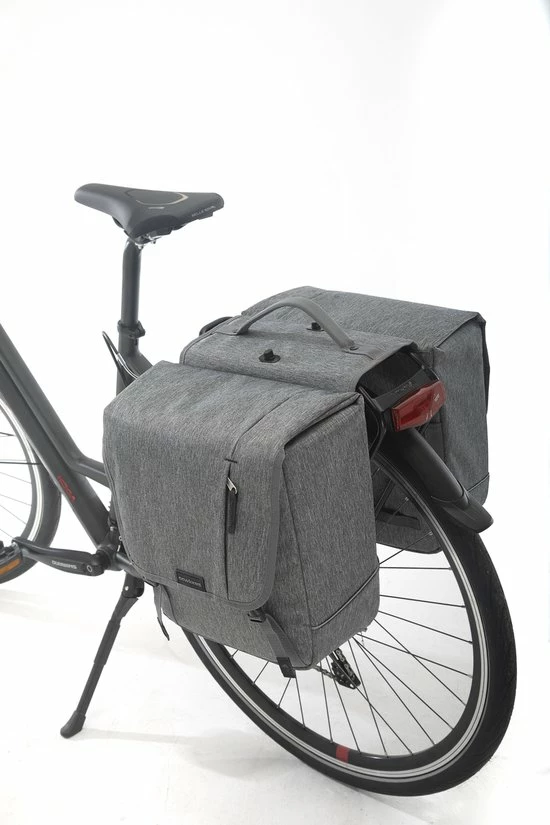 Praktische dubbele fietstassen die snel afneembaar zijn. Deze stevige dubbele tas past op bijna alle fietsen, ook elektrische.