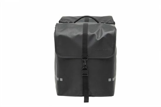 Ben je op zoek naar een dubbele fietstas gemaakt van sterk materiaal en een stoer uiterlijk? Deze ruime fietstas past op MIK dragers.