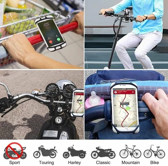 ✦ Eenvoudige installatie: de elastische siliconenriemen maken het zo gemakkelijk te bevestigen of te verwijderen van fietssturen, motorfietsen of kinderwagens van elke maat