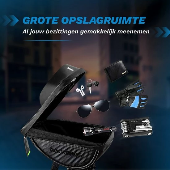 De telefoonhouder kun je makkelijk vastzetten op de fiets en is ook makkelijk te verwijderen. De telefoonhouder is voorzien van een opbergvak waar je al je spulletjes in kwijt kan. Het unieke aan deze telefoonhouder is dat je accessoires kunt meenemen in de telefoonhouder zoals een powerbank, geld, sleutels of oordopjes. Een must have voor iedereen die een fiets heeft en graag op pad gaat met zijn fiets!