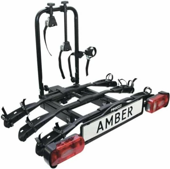 Deze Pro-User Amber III Fietsendrager is een lichtgewicht en kantelbare fietsendrager voor het transport van 3 fietsen. Deze fietsendrager is eenvoudig op de trekhaak te plaatsen door de gepatenteerde snelkoppeling. Op de Amber III worden fietsen stevig bevestigd in brede, stabiele kunststof wielhouders en er is geen belasting op het crankstel van de fiets door middel van framebevestiging. De verlichting werkt via een gecombineerde 7/13-polige (Jaeger) stekker, incl. mistachterlicht en achteruitrijverlichting (via 13-polige stekker.)