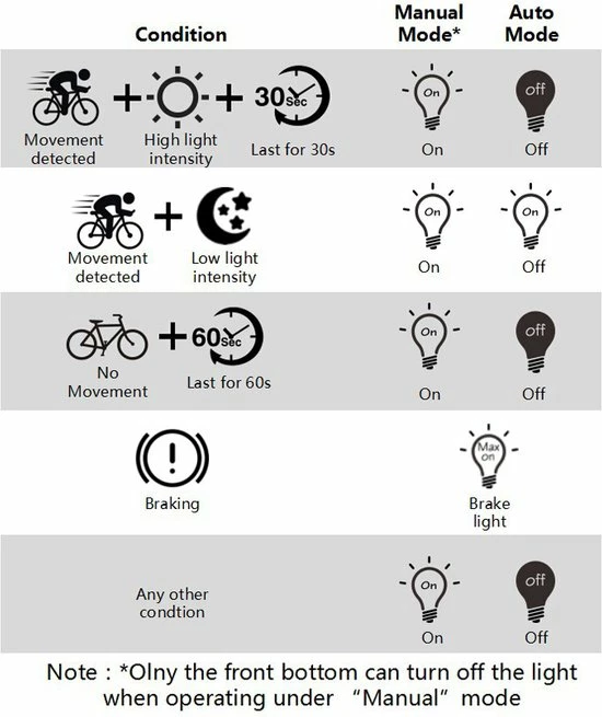 Schakel de verlichting automatisch uit als er gedurende 30 seconden geen trilling is en schakel automatisch in wanneer u de trilling voelt (Behalve in constantlichtmodus)