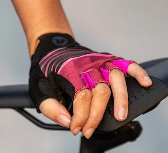 Voor de stijlvolle wielrenster zijn deze zomerse Impress handschoenen onmisbaar. Ze zijn namelijk perfect te combineren met de andere items uit de Impress lijn. Met deze handschoenen maak jij je stijlvolle wielrenner tenue compleet! De handschoenen zijn gemaakt van een ademende Dynaflex stof. Dankzij de Serino palm met gelpads ervaar je extra comfort tijdens het fietsen. Tijdens fietsritten in de zomerzon veeg je transpiratie in het gezicht gemakkelijk weg met de badstof duim. Nog een voordeel is dat de Impress wielerhandschoenen gemakkelijk zijn om aan en uit te trekken dankzij de handige lipjes aan de onderkant van de handschoenen. Dankzij de verstelbare klittenbandsluiting zorg je er eenvoudig voor dat de handschoenen goed aansluiten en blijven zitten. Maak nu je Impress set compleet met deze stijlvolle handschoenen!