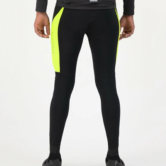 In de wintermaanden is een goede fietsbroek belangrijk om optimaal te kunnen genieten van de afstand. De Rogelli Tyro bibtight is gemaakt van een gevoerde 4-way Dynatherm Flex stof, deze stof houdt je benen lekker warm als je op de fiets zit. Naast warmte en bewegingsvrijheid, biedt de fietsbroek dankzij het ademende vermogen van deze stof ook voldoende ventilatie. De naadloze Active zeem is geschikt voor korte tot middellange afstanden, wat de Tyro maakt tot een perfect instapmodel voor beginnende fietsers. De zachte toplaag van de padding voorkomt wrijving en irritatie. De voorgevormde vleugels van de zeem, gecombineerd met de strakke race fit van de broek, zorgen voor een optimale pasvorm. Dankzij de elastische enkels met aan de binnenkant silicone grip, blijft de broek tijdens het fietsen goed op zijn plaats zitten. Daarnaast zijn de broekspijpen van de fietsbroek afgewerkt met een rits, waardoor je de broek eenvoudig aan en uit kunt trekken.