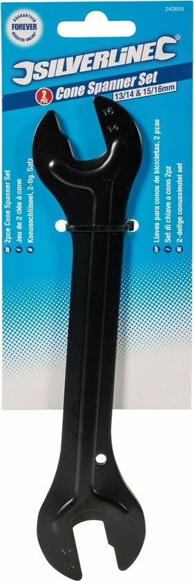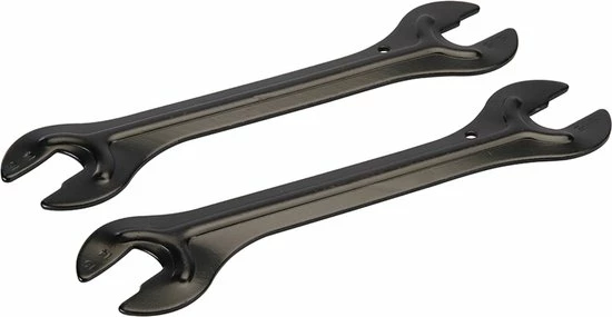 De smalle sleutels passen op nauwe vergrendelmoeren. 2 delige set voor een gemakkelijke verstelling. De 13/14 mm en 15/16 mm sleutels passen op de meeste assen. Zwarte, roestbestendige verfafwerking