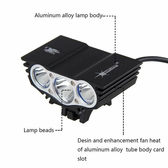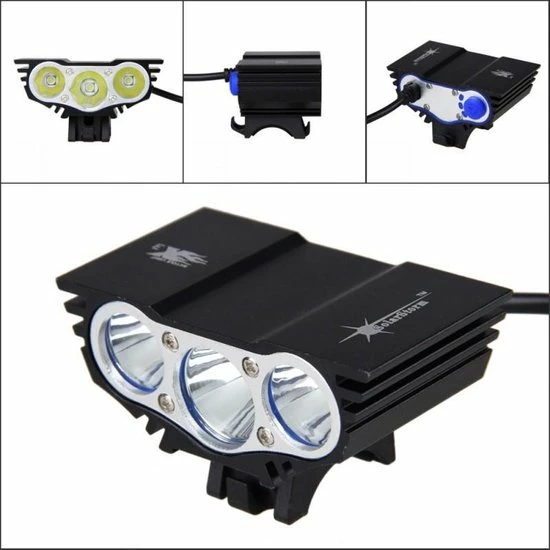 3x CREE T6 LED koplamp voor MTB/race met USB aansluiting – 3600 Lumen