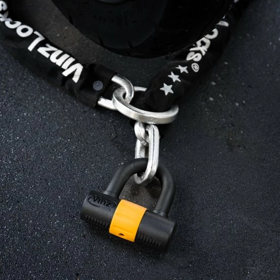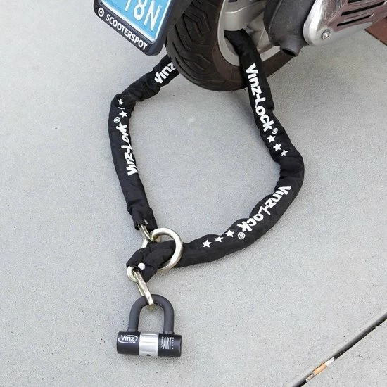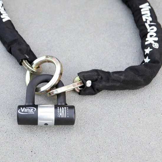 Het VINZ Kungur kettingslot leent zich uitstekend om je scooter of bromfiets te beveiligen tegen diefstal. De loop aan het uiteinde geeft de ketting meer reikwijdte. Dit is erg handig als het slot om een vast object wordt vastgemaakt zoals een lantaarnpaal of hek. Het slot van VINZ is ART 3 goedgekeurd en is gemaakt van gehard staal. Daarnaast is het slot ook te gebruiken als schijfremslot. Erg handig en functioneel! Het slot is naast scooterslot ook goedgekeurd als bootslot. Al met al kan worden gezegd dat dit een zeer multifunctioneel slot is.