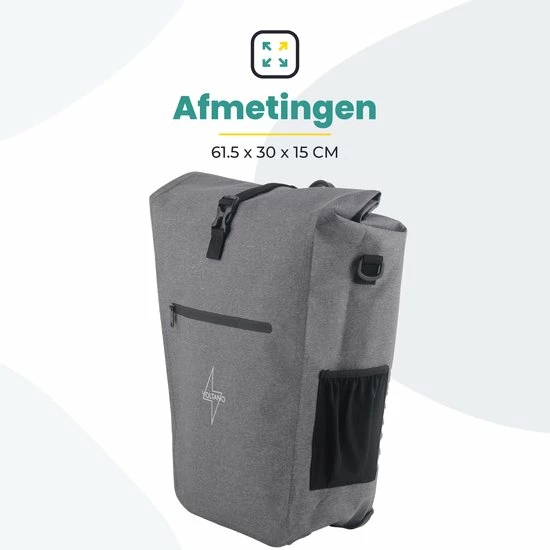 Over de Voltano Luxe E-bike Fietstas 28L ? Grijs ? Pakaftas Met Laptop vak ? 100% Waterdicht – Met Gratis Schouderband